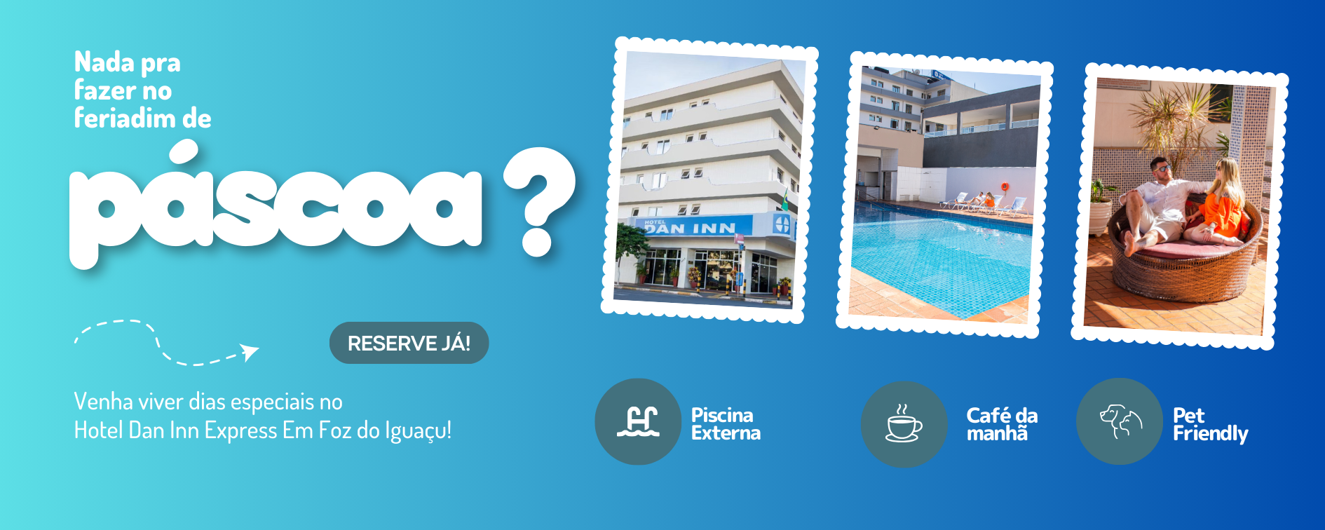 A Páscoa é o momento ideal para sair da rotina, relaxar e viver dias mais leves. No Dan Inn Foz, você encontra conforto, praticidade e um ambiente acolhedor para aproveitar o feriado do jeito que ele deve ser: sem pressa e com tranquilidade.