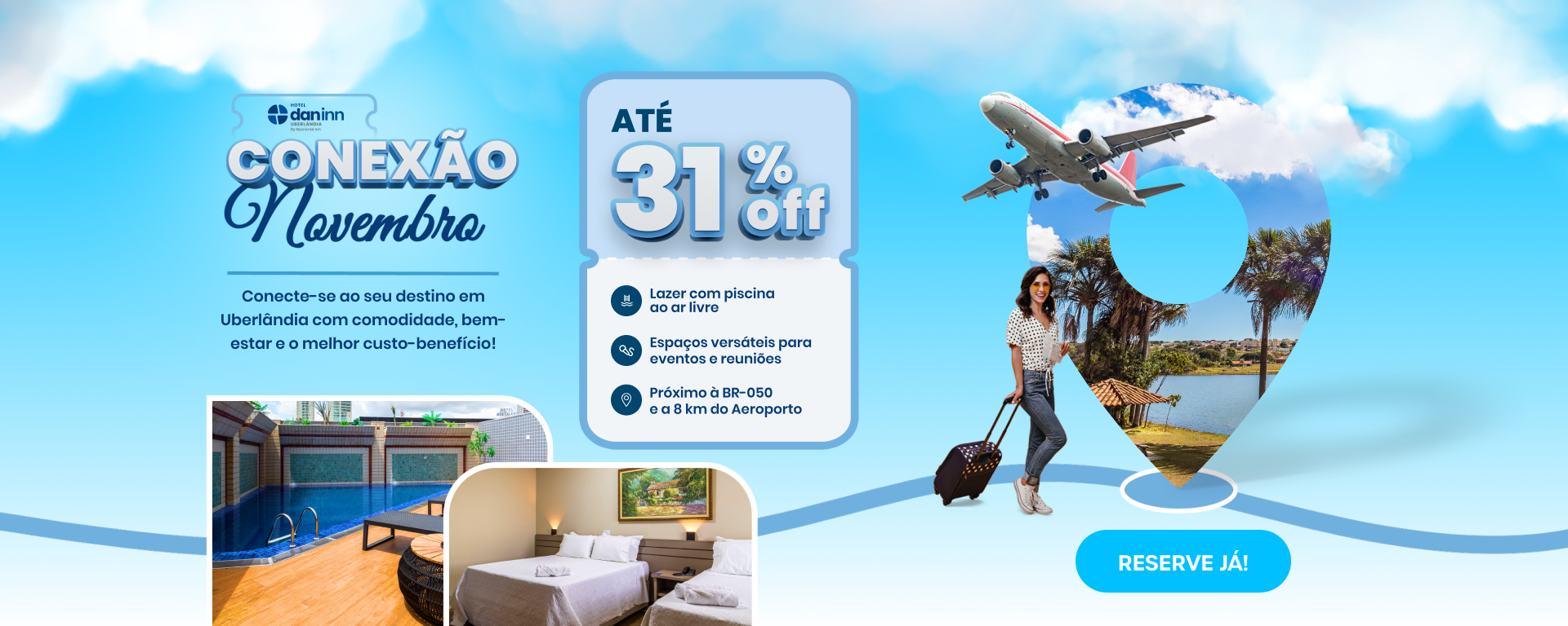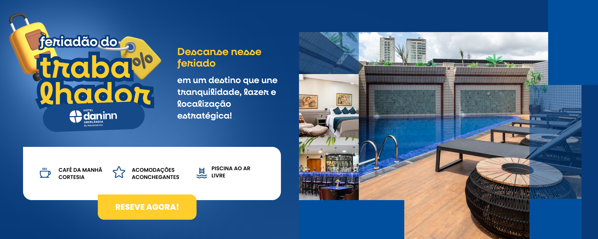 Descubra no Dan Inn Uberlândia a combinação perfeita de acolhimento, praticidade e localização estratégica para oferecer uma experiência completa a quem visita a cidade. Seja para uma viagem a lazer ou a negócios, o hotel conta com acomodações confortáveis com acessibilidade, recepção 24 horas, salas versáteis para eventos e reuniões, área de lazer com piscina e um agradável Scoth Bar, garantindo bem-estar e comodidade em todos os detalhes.