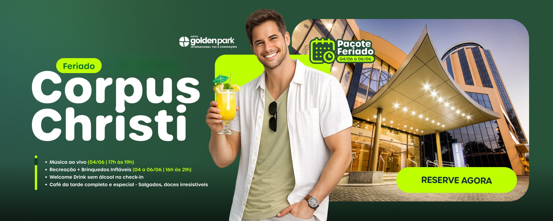 De 04 a 06 de junho, o Golden Park Internacional Foz preparou uma programação pensada para todas as idades, com lazer, boa música e experiências que tornam sua viagem ainda mais completa.