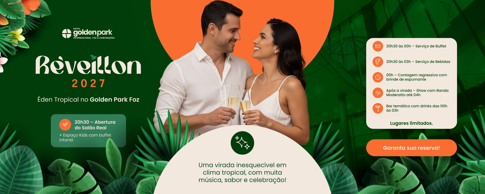 Entre música, sabores incríveis e uma atmosfera envolvente, o Réveillon no Golden Park Foz é o cenário perfeito para renovar as energias e celebrar novos começos.