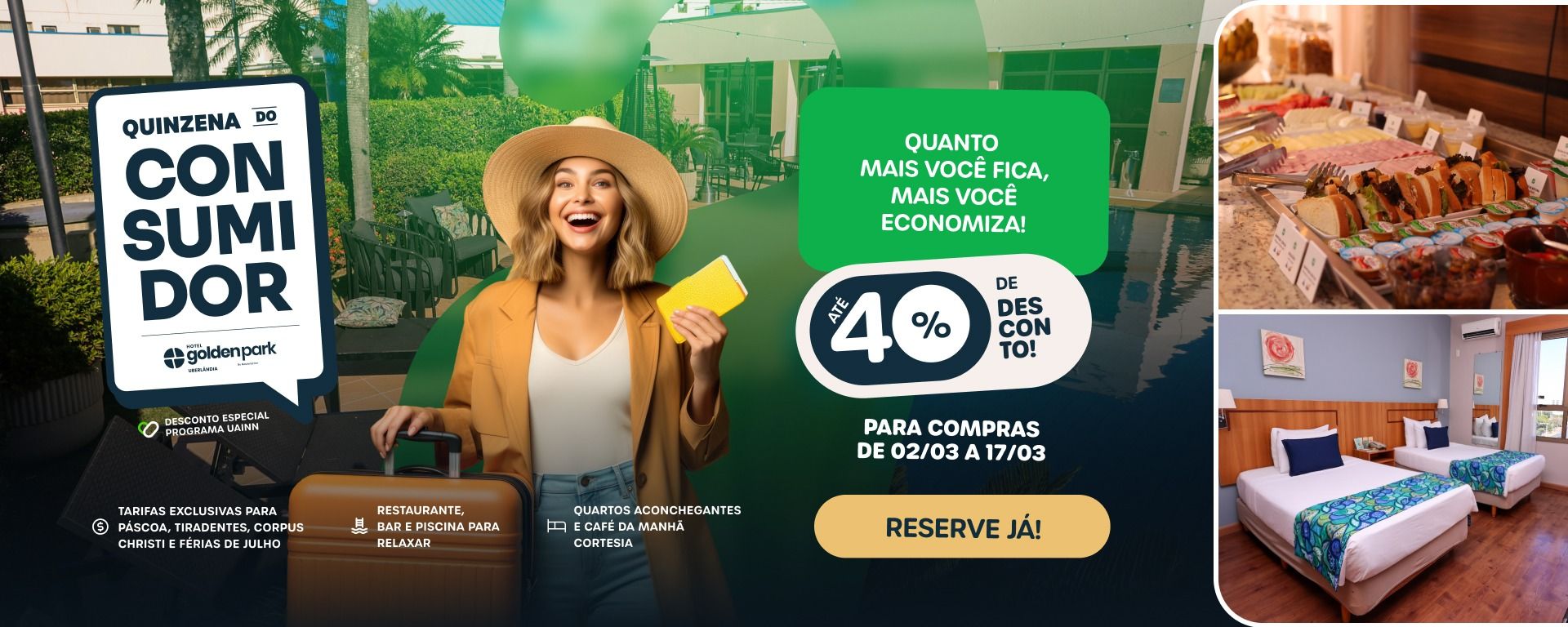 Experimente todo o conforto e bem-estar que o Hotel Golden Park Uberlândia oferece em uma estrutura cuidadosamente planejada para proporcionar a você momentos incríveis durante a sua estadia, seja em uma viagem de trabalho ou lazer, com o melhor custo-benefício.