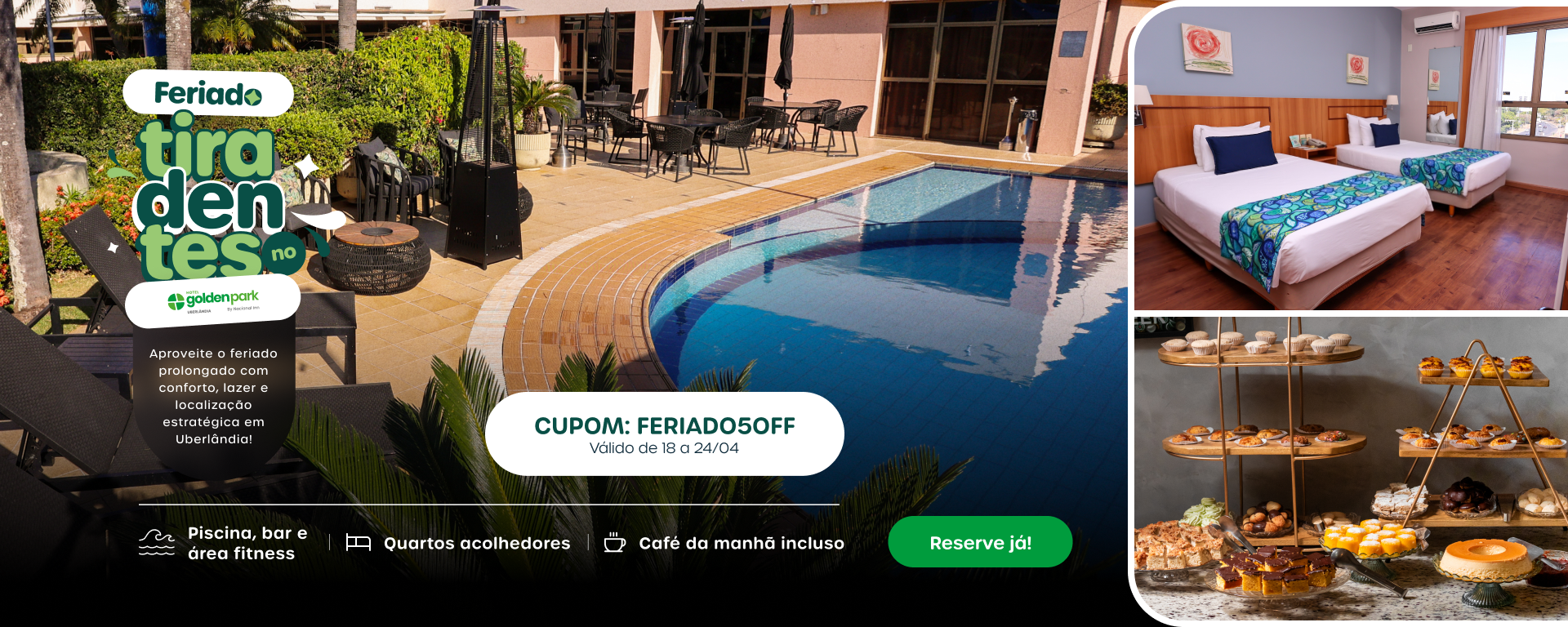 As acomodações aconchegantes e acessíveis do hotel garantem um atendimento excepcional com uma série de comodidades, que incluem recepção 24 horas, café da manhã de cortesia de alta qualidade com horários especiais, piscina, academia parceira à disposição para hóspedes e espaços para eventos corporativos e sociais.
