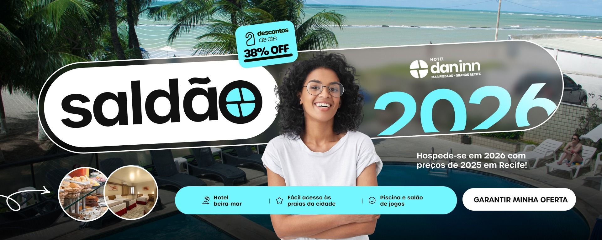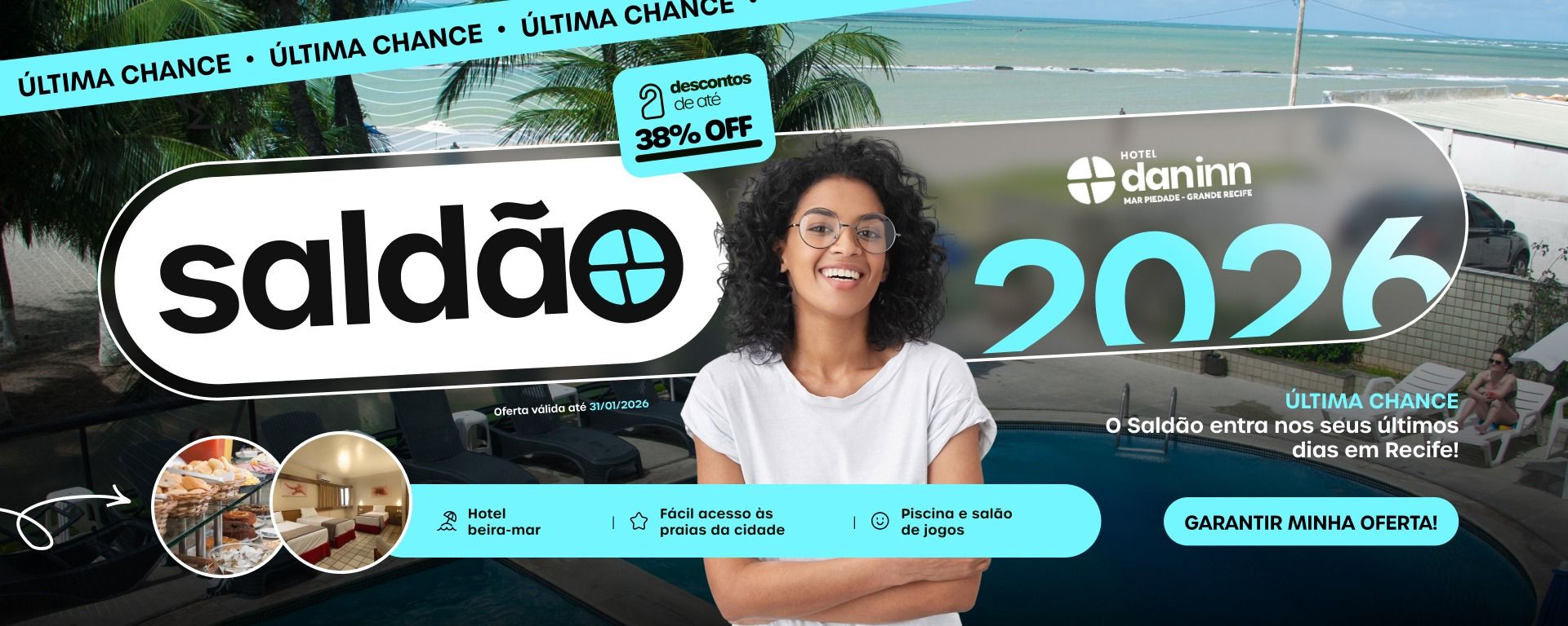 Viajar em 2026 ficou ainda melhor! Com o Saldão 2026, você garante sua estadia em Recife com preços de 2025. Reserve com até 38% OFF e aproveite essa oportunidade única para planejar sua próxima viagem com economia e tranquilidade.