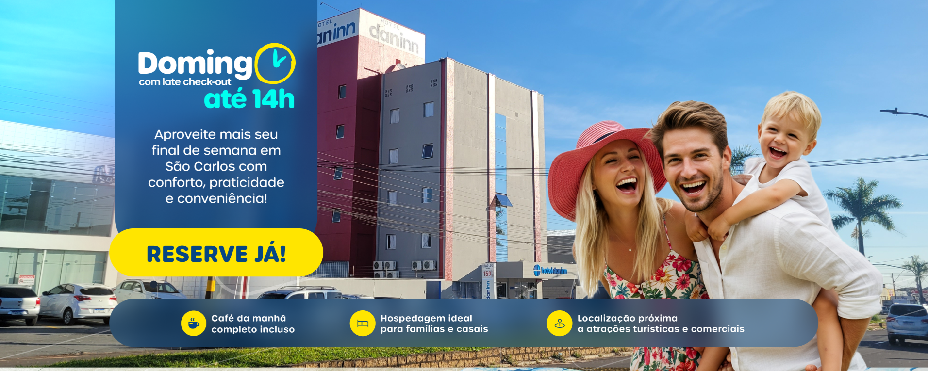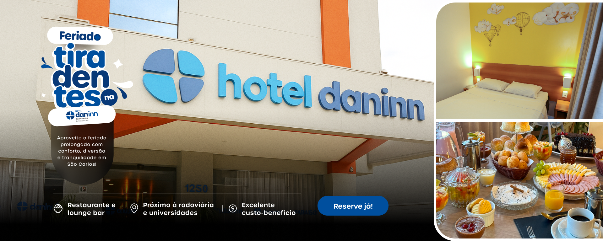 No Hotel Dan Inn São Carlos, você encontra todo o conforto, segurança e hospitalidade para explorar o melhor da cidade, seja a lazer ou a trabalho. Contamos com a conveniência de um serviço de recepção 24 horas, espaço para coworking, sala de eventos e wifi de alta velocidade à sua disposição.