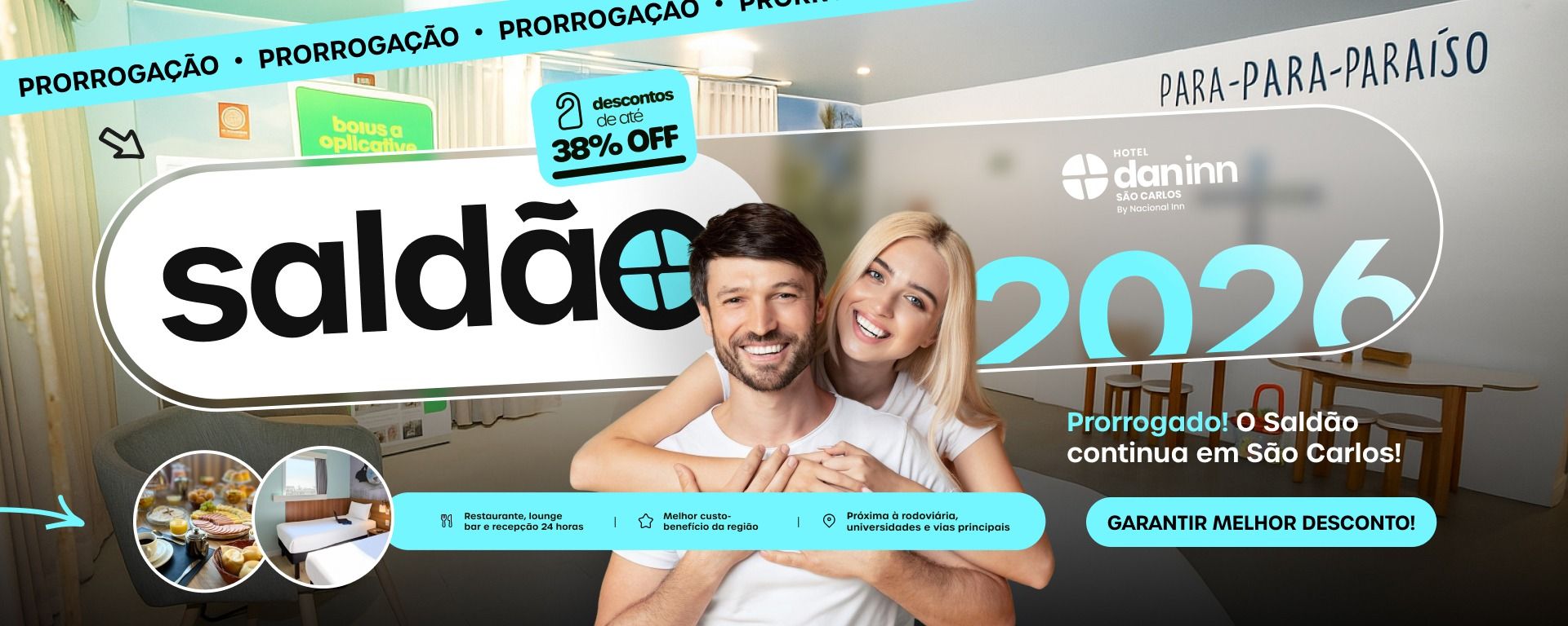 Chegou a sua hora de aproveitar as melhores tarifas com o Saldão 2026 no Hotel Dan Inn São Carlos!