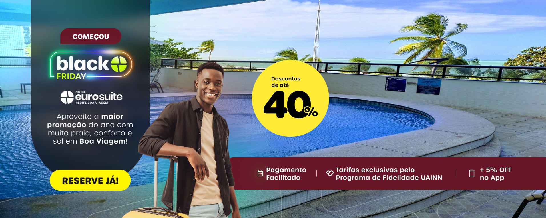 Essa é a sua chance de garantir descontos imperdíveis em sua próxima viagem, seja a lazer, turismo ou a negócios, para o Hotel Euro Suite Recife Boa Viagem.