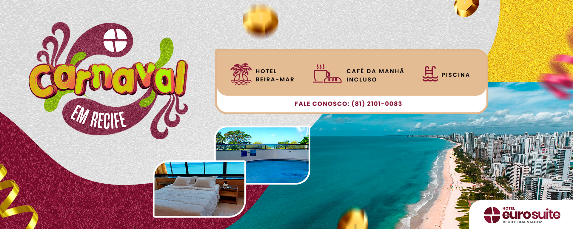 Carnaval é tempo de celebrar, relaxar e viver momentos especiais, especialmente em um destino que une praia, energia e beleza natural. No Hotel Euro Suite Recife Boa Viagem, você se hospeda à beira-mar, com uma vista encantadora e fácil acesso aos principais pontos da cidade para curtir o feriado do seu jeito.