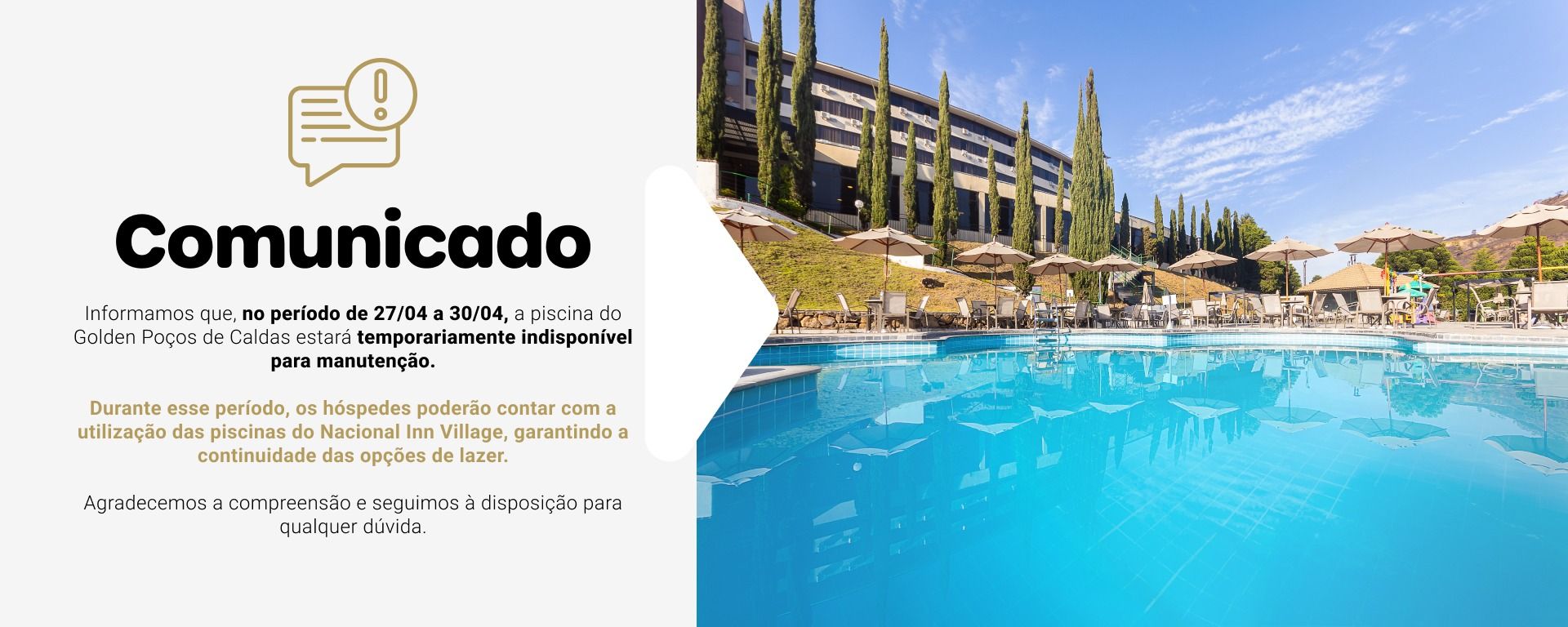 O Hotel é simplesmente maravilhoso!!! Para todas as idades... já viemos muitas e vezes e iremos voltar outras vezes!!! Comidas e bebidas excelentes!!! Simplesmente o melhor lugar... Toda minha família ama o Golden Park Poços de Caldas!!!