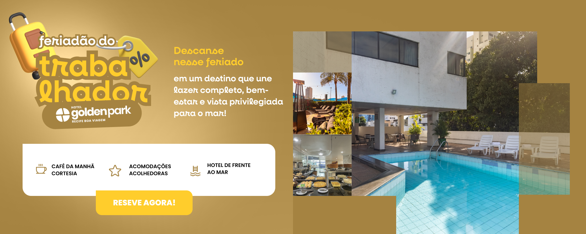 O Hotel Golden Park Recife Boa Viagem está localizado na Avenida Boa Viagem, 5576, Boa Viagem: a 3km do Aeroporto, a 10 minutos do Recife Antigo, a 15 minutos do Sítio Histórico de Olinda e perto de vários bares e restaurantes. Fica próximo da Pracinha de Boa Viagem (ótimo local para encontrar opções de artesanatos e comidas típicas) e do Parque Dona Lindu (espaço de lazer e cultura ao ar livre com quadra poliesportiva, pista de skate, pista de cooper e parquinho infantil).