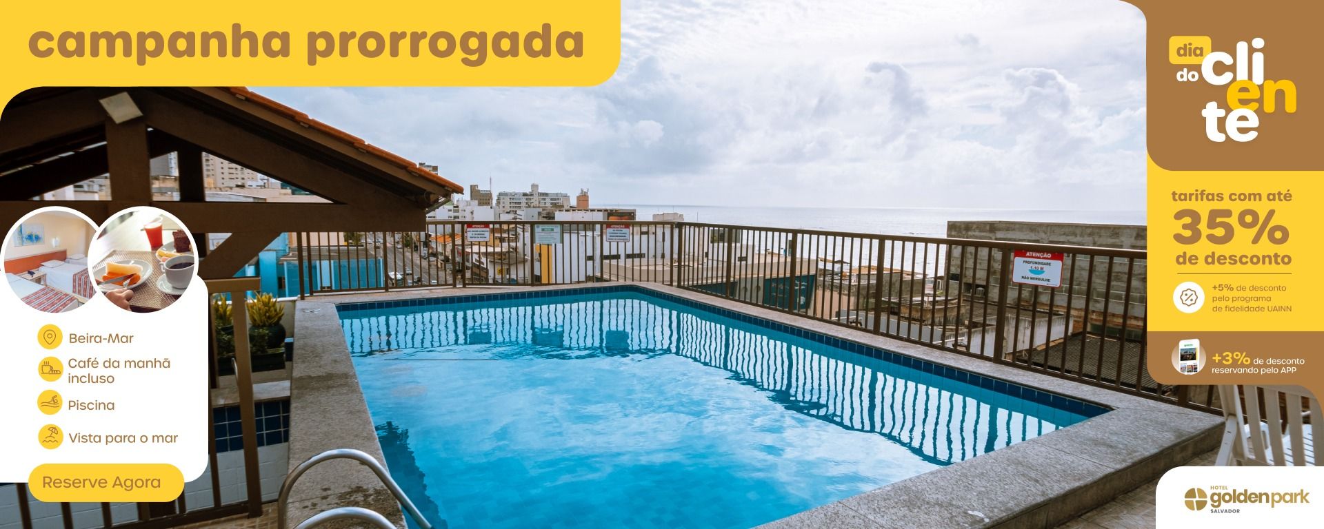 De 16 a 30 de setembro, aproveite a Semana do Cliente no Golden Park Salvador e garanta sua reserva com o melhor valor do ano para hospedagens até fevereiro de 2026*.