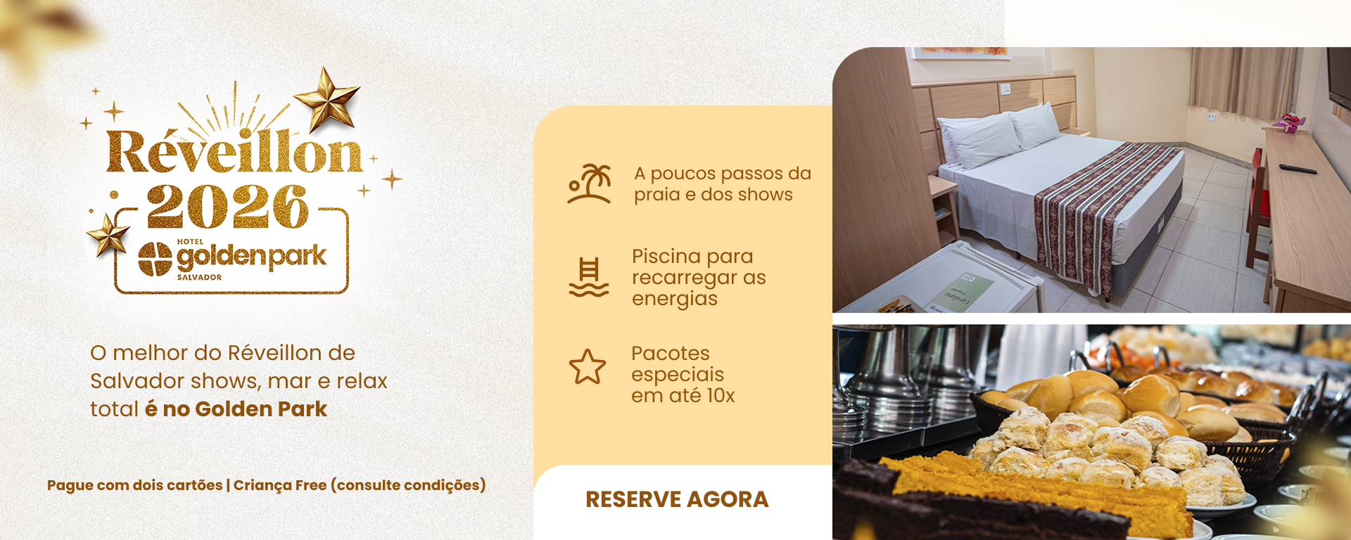 Essa é a experiência no Golden Park Salvador. A experiência que você merece para um Réveillon alto astral e feliz.