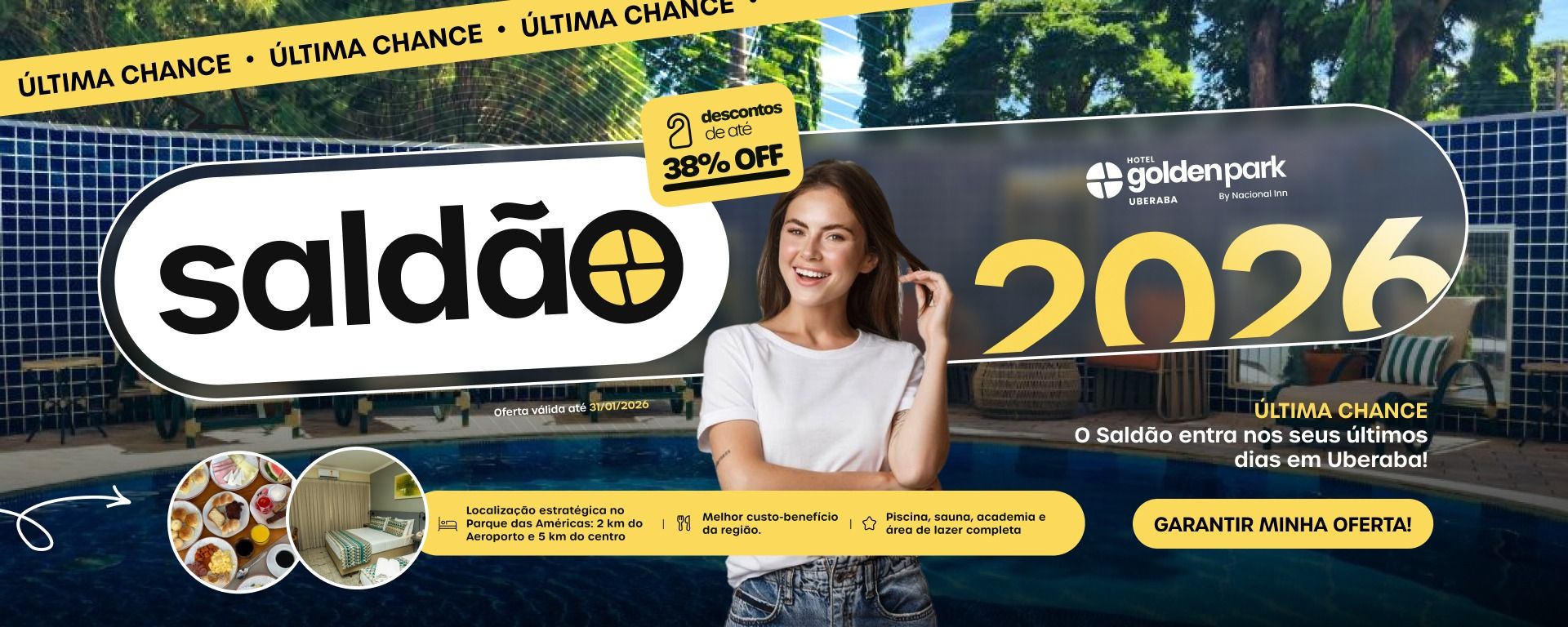Chegou a sua hora de aproveitar as melhores tarifas com o Saldão 2026 no Hotel Golden Park Uberaba!