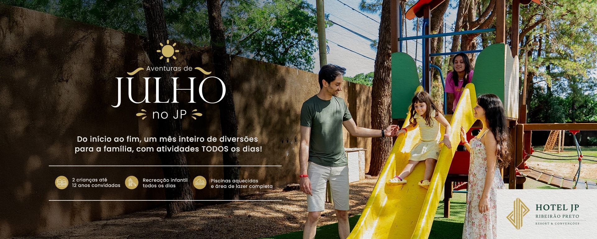 Com recreação infantil todos os dias, festa julina, jantares temáticos e animadas pool parties, o Hotel JP é o destino ideal para aproveitar as férias escolares em família.