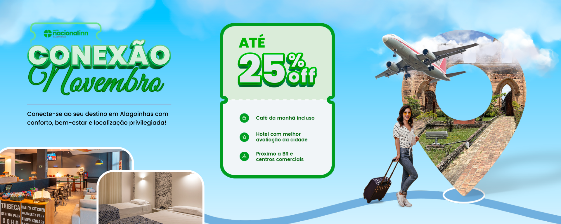 Viva dias de sol, mar e bem-estar no Nacional Inn Alagoinhas. Com a melhor avaliação da cidade, o hotel combina conforto, hospitalidade e uma localização privilegiada que coloca você perto dos principais centros comerciais e atrações da região. O destino ideal para relaxar, se inspirar e aproveitar cada momento.