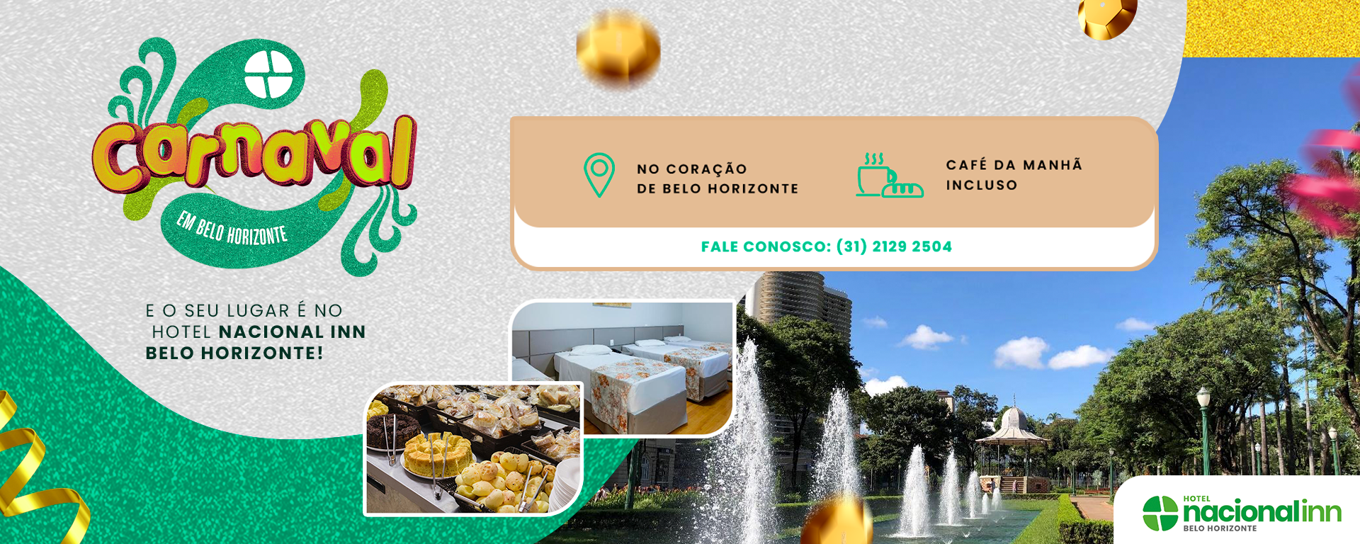 O Nacional Inn Belo Horizonte oferece delicioso café da manhã como cortesia! O cardápio é diversificado entre bebidas quentes, sucos, pães, cereais, manteiga, geleias, laticínios, frutas e bolos.