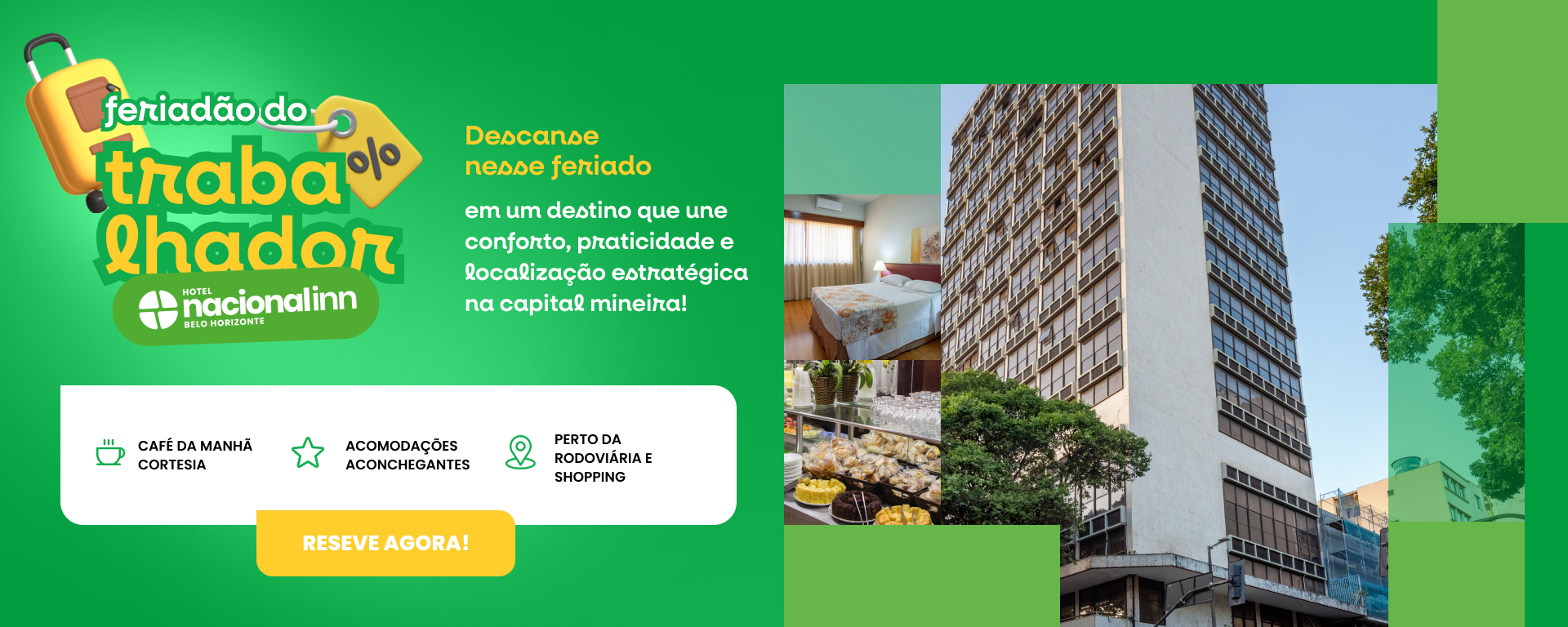 O Nacional Inn Belo Horizonte tem estrutura para receber eventos! A sala José de Alencar pode acomodar até 20 pessoas e a sala Antônio Gomes até 60 pessoas.