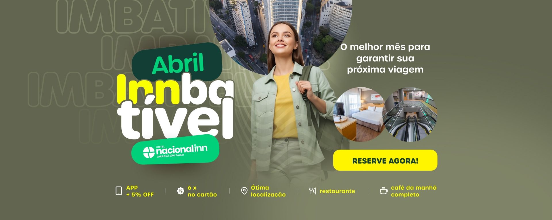 O Nacional Inn Jaraguá preparou condições exclusivas durante todo o mês de outubro, para que você aproveite o melhor da capital paulista — seja para trabalho, lazer, shows ou turismo. Localizado no coração de São Paulo, nosso hotel é a escolha ideal para quem busca conforto, segurança e fácil acesso aos principais pontos da cidade.