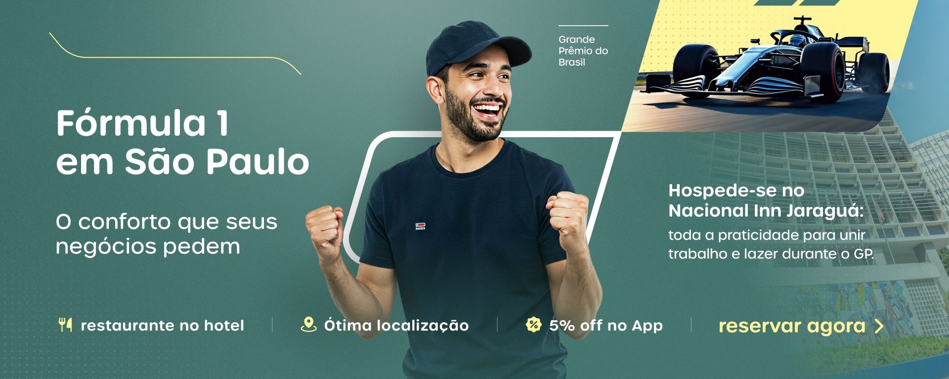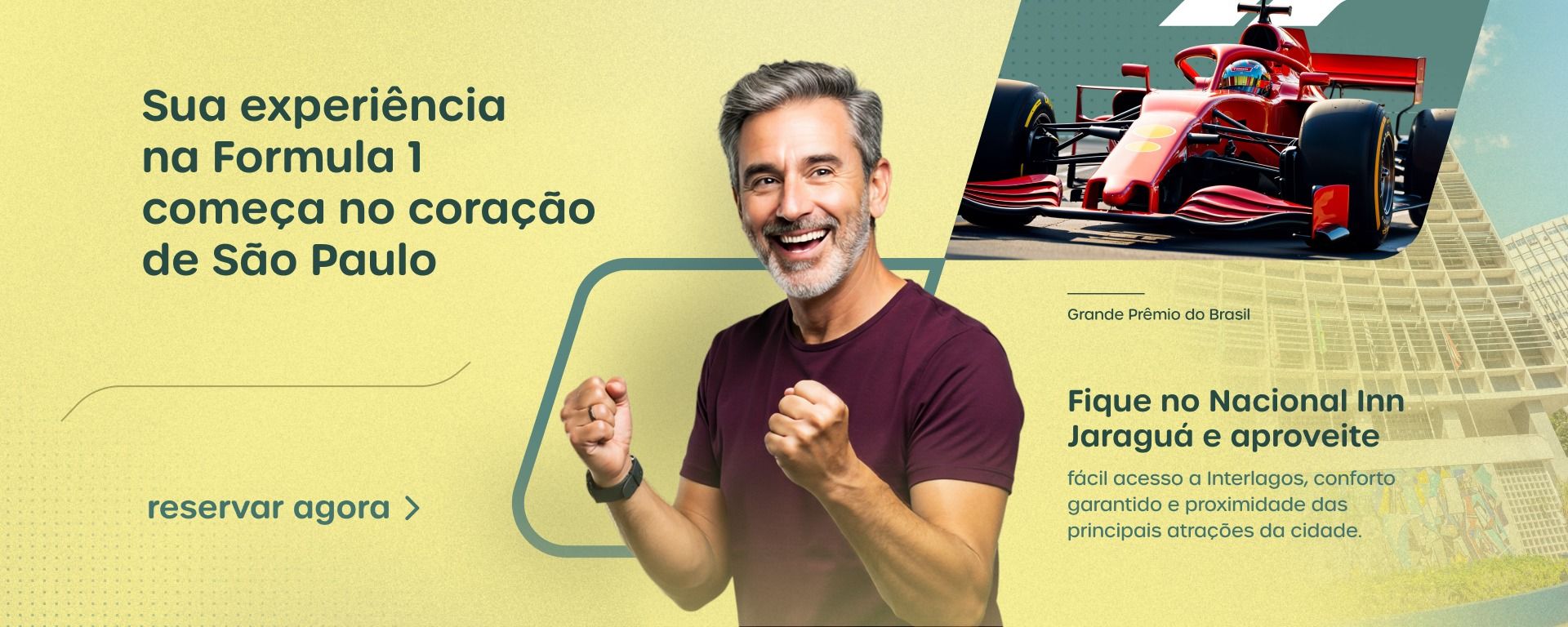 O Nacional Inn Jaraguá São Paulo é a escolha ideal para quem vem viver o grande espetáculo da Fórmula 1 na cidade.