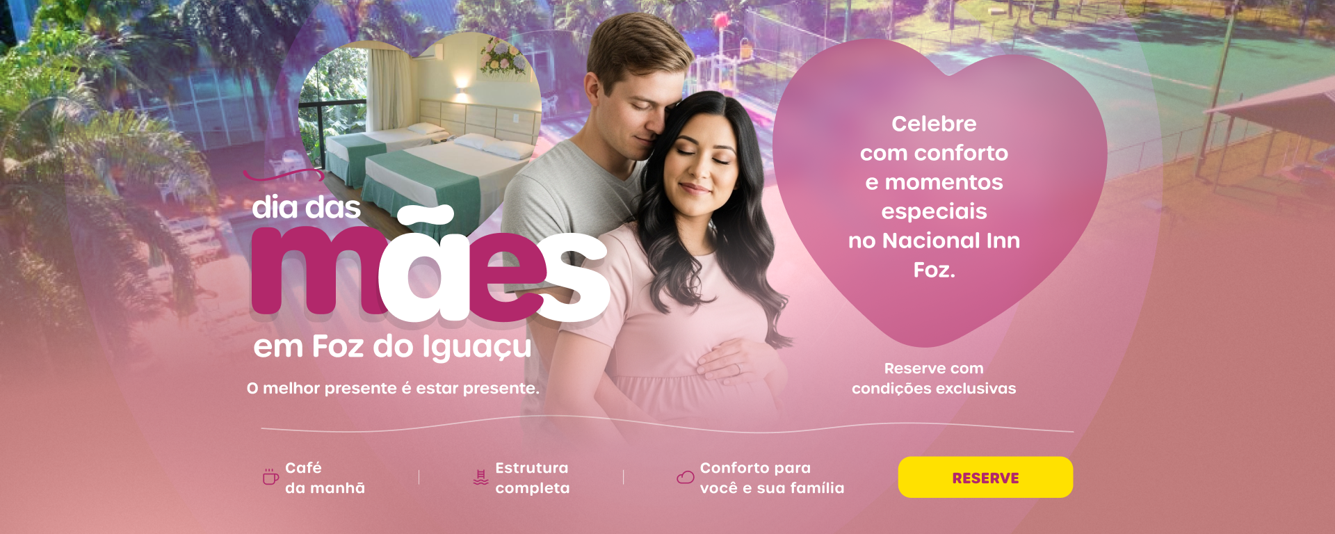 Foz do Iguaçu é o cenário perfeito para celebrar: natureza, tranquilidade e dias especiais em família. E no Nacional Inn Foz, cada detalhe é pensado para tornar essa data ainda mais significativa.