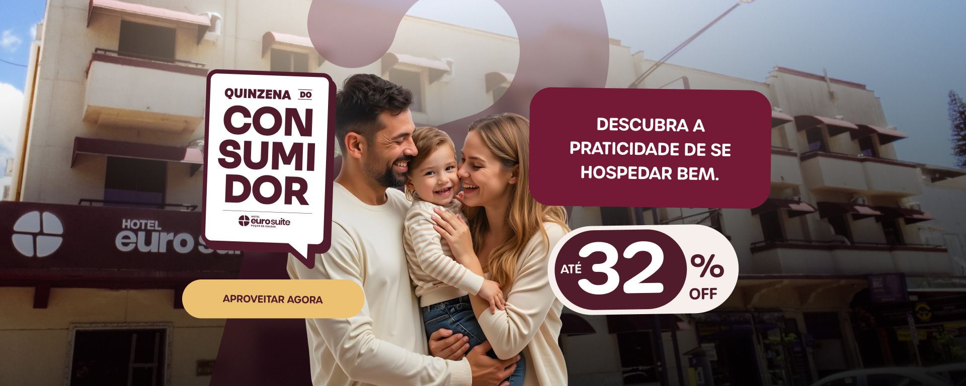 10 — Promoção válida exclusivamente para compras realizadas por meio do Site Oficial do Euro Suite Poços de Caldas, do Aplicativo, ou através da Central de Reservas, pelo telefone (35) 2143-0283 ou WhatsApp (35) 3716-6000.
