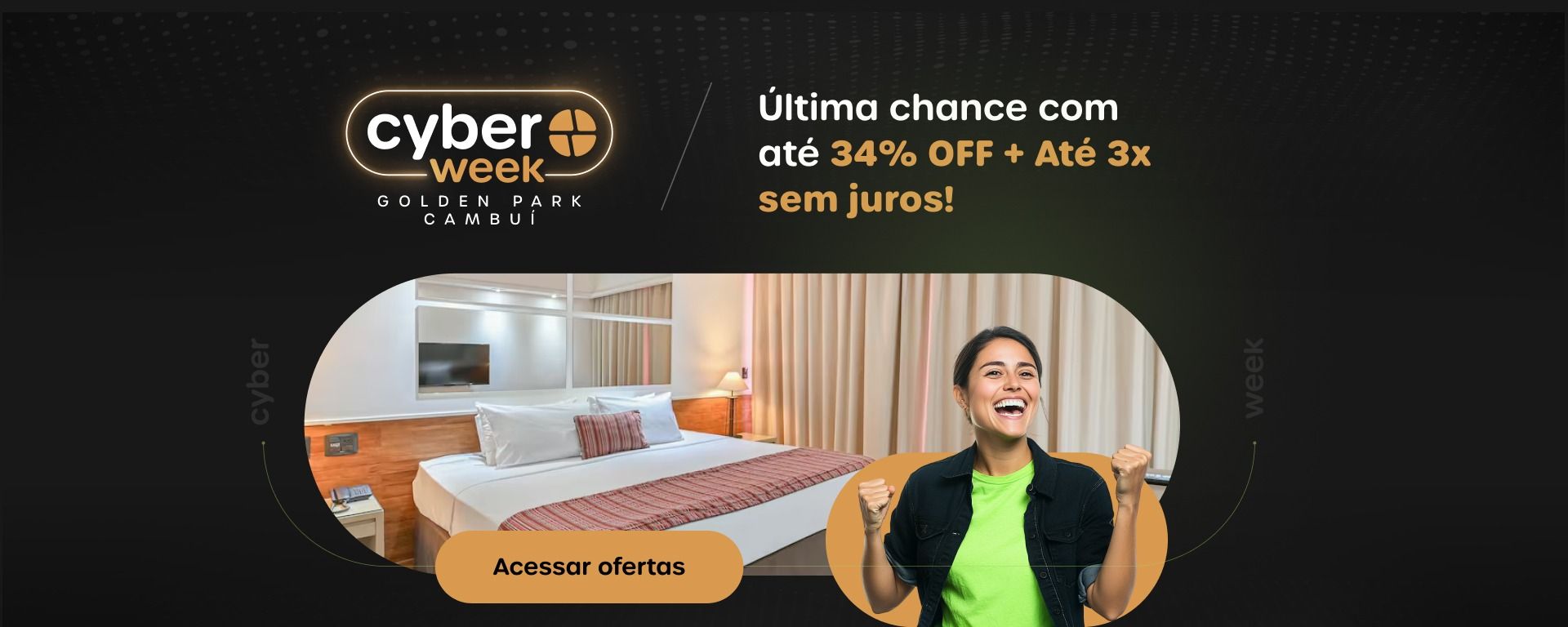 Perdeu a Black Friday? 😱 Não tem problema — a Cyber Week chegou para salvar sua viagem! Aproveite descontos incríveis de até 34% OFF e parcelamento facilitado em até 3x sem juros. É a última oportunidade do ano para garantir sua hospedagem em Campinas com o melhor preço!