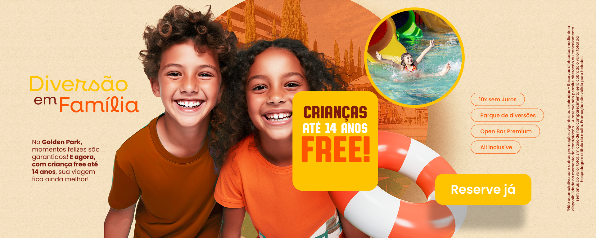 *2 crianças de até 11 anos se hospedam gratuitamente no mesmo apartamento dos pais, tornando a experiência completa para toda a família.