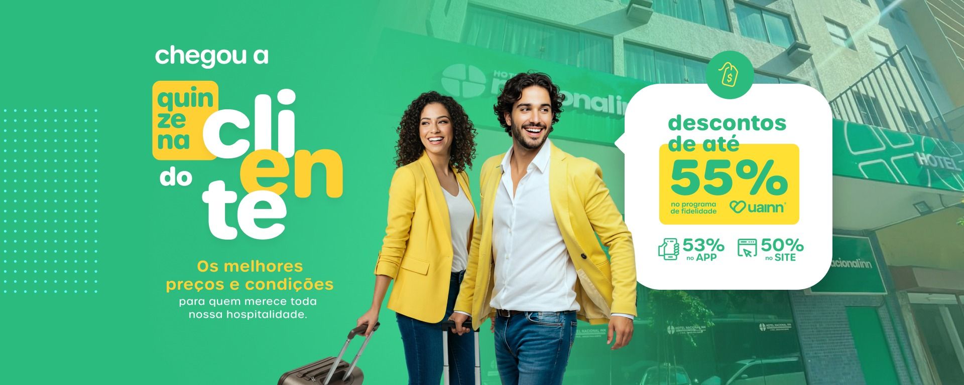 Aqui no Nacional Inn São Paulo você garante: Até 38% OFF no UaInn + 2% OFF no pagamento via PIX e parcelamento em até 3x sem juros (mínimo R$150 por parcela).