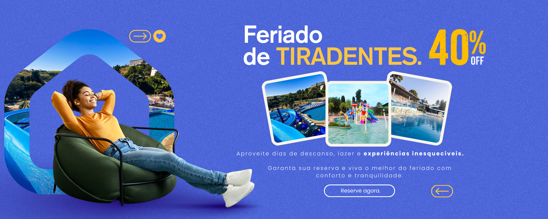 Piscinas, gastronomia liberada, programação de lazer e aquele clima de férias que transforma qualquer feriado em experiência inesquecível.