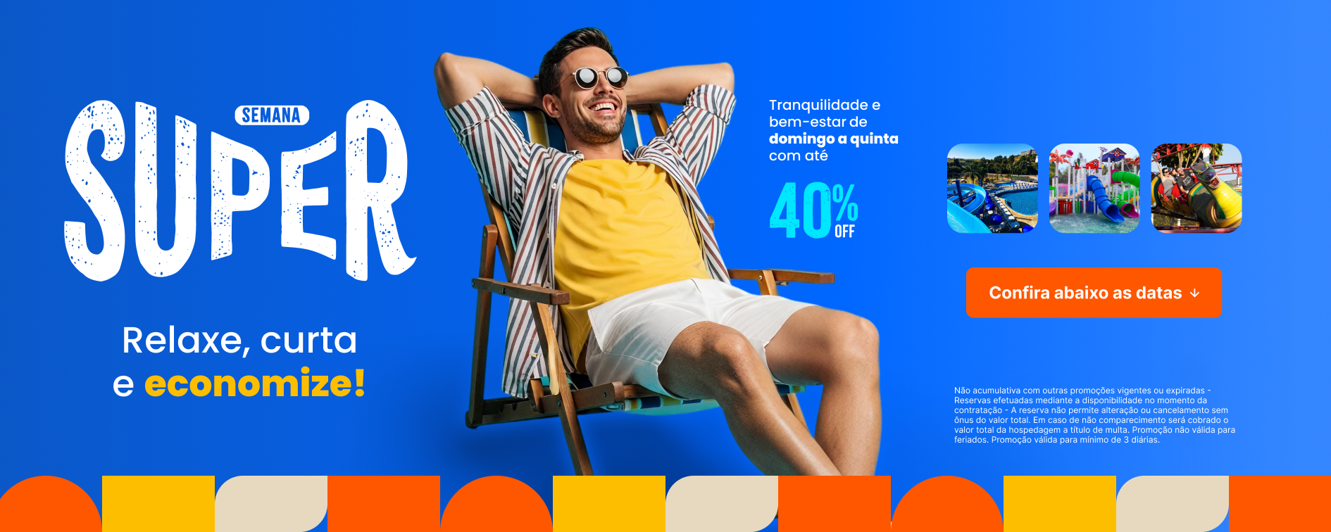 De domingo a quinta, você vive uma experiência completa com muito lazer, conforto e tranquilidade — pagando menos.