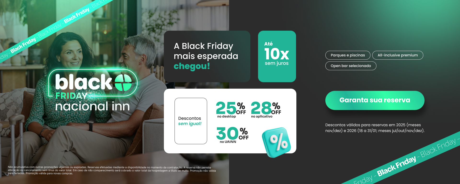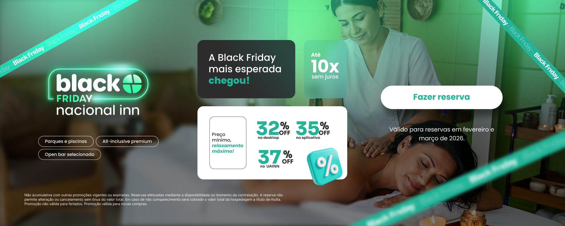 Aproveite as condições especiais da Black Friday Nacional Inn e garanta sua próxima viagem com muito mais economia, conforto e lazer em um só lugar.